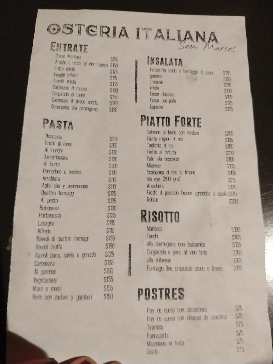 Beyond the pizzas, guests can indulge in an array of Italian delights. The cheese and meat boards have received high praise for their quality and presentation, complementing the inviting ambiance of the venue. Whether you're looking for a cozy night out or a quick escape from the lively streets nearby, Osteria Italiana San Marcos offers great prices and even better service, making it an ideal spot for all occasions.